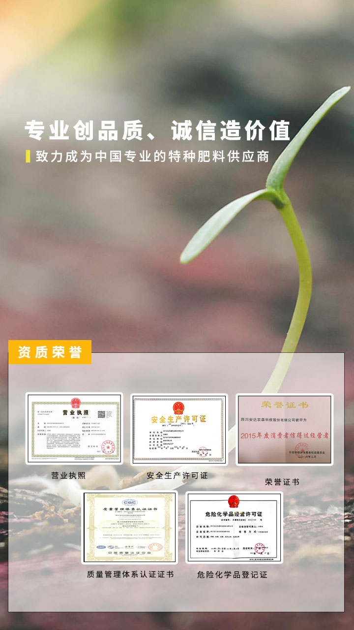 經(jīng)過(guò)二十余年的探索和實(shí)踐,依托自身技術(shù)和出口背景,按照國(guó)際市場(chǎng)規(guī)范培養(yǎng)了大批高素質(zhì)的專(zhuān)業(yè)化技術(shù)化團(tuán)隊(duì),掌握了水溶性肥料的核心技術(shù),擁有完善的研發(fā)中心、質(zhì)檢中心,目前已獲得多個(gè)國(guó)家專(zhuān)利技術(shù)。公司一直把“做中國(guó)專(zhuān)業(yè)的特種肥料供應(yīng)商”作為自身的發(fā)展使命。推廣高端植物營(yíng)養(yǎng)與先進(jìn)技術(shù),高效施肥方式的綜合配套方案,減輕中國(guó)種植業(yè)勞動(dòng)強(qiáng)度,讓種植業(yè)效率更高、效果更強(qiáng)、效益更好!努力成為革新中國(guó)種植業(yè)生產(chǎn)方式的偉大公司!